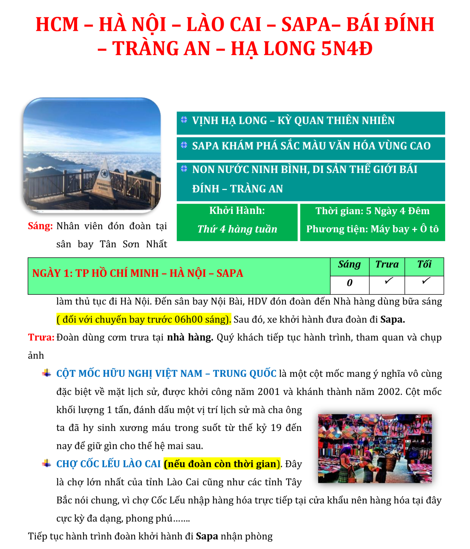 Nếu bạn đang tìm kiếm một hành trình đầy sắc màu và trải nghiệm đậm chất văn hóa Việt Nam, chuyến du lịch Hà Nội – Lào Cai – Sapa – Bái Đính – Tràng An – Hạ Long trong 5 ngày 4 đêm chắc chắn sẽ làm bạn hài lòng.